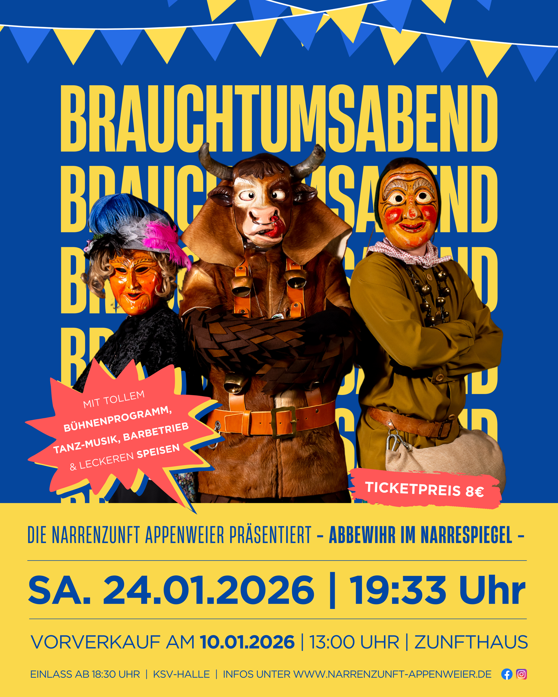 Kartenreservierung per Mail an: brauchtumsabend(at)narrenzunft-appenweier.de